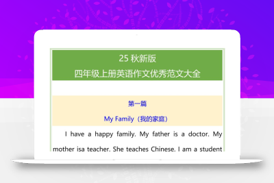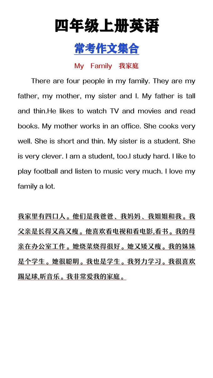 繁星职途 四年级 【2025秋新版】四年级上册英语常考作文合集 https://www.fanxingzhitu.com/15533.html