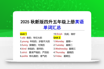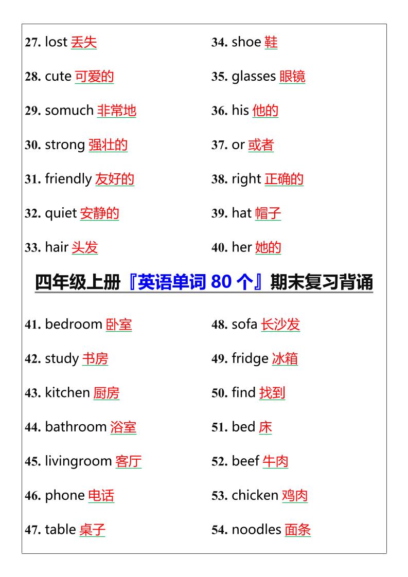繁星职途 四年级 【2025秋新版】四年级上册『英语单词80个』期末复习背诵 https://www.fanxingzhitu.com/15584.html
