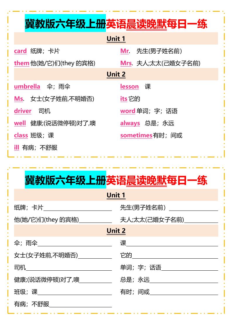 - 六上语文复习重点晨读单(16页) 2025-12-05