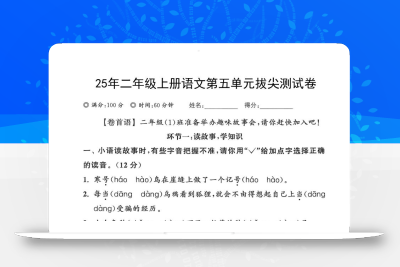 - 25年二上语文第五单元拔尖测试卷(含答案5页) 2025-11-26