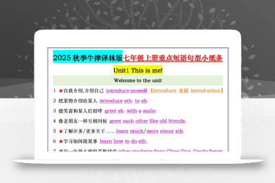 - 七年级上英语重点短语句型小纸条(牛津译林版) 2025-12-19