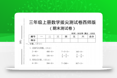 繁星职途 三年级 三年级上数学期末拔尖测试卷3《青岛63版》 https://www.fanxingzhitu.com/32095.html