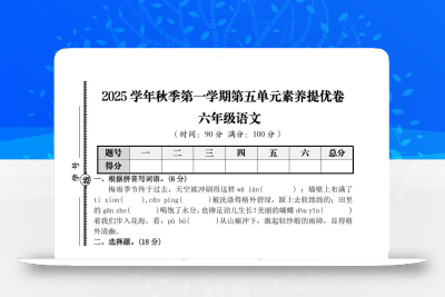 繁星职途 六年级 六上语文第六单元素养提优卷(含答案) https://www.fanxingzhitu.com/33100.html