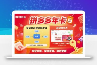这是针对拼多多商家的高效起店玩法课,覆盖标品、水果生鲜等类目:生鲜最快2小时起量,标品最慢2天起链接,主打“当天带利润起飞”“涨价不死”“二阶段不断流”核心优势。课程含1.0基础玩法+1.5,2.5升级内容,从起链接逻辑、直通车考核、裂变商品等实操维度,教你快速起店且稳定获流,适合想高效起店的拼多多商家。