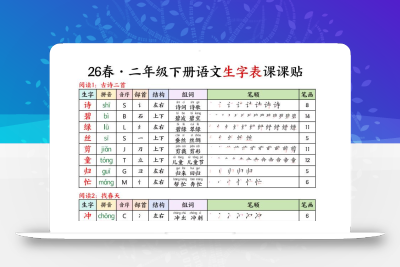 繁星职途 四年级 26春新四下语文开学必背课后生字表预习(生字拼音部首结构组词)15页 https://www.fanxingzhitu.com/44102.html