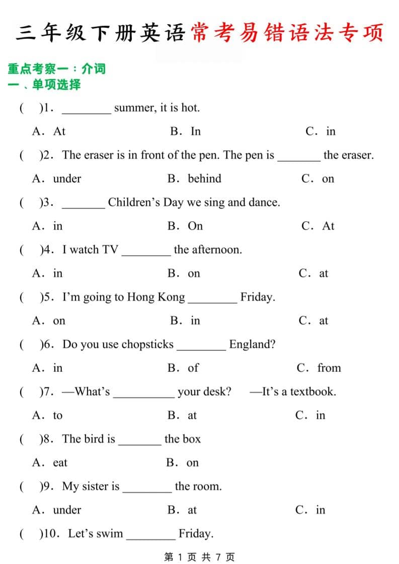 繁星职途 三年级 三年级下英语常考易错题 https://www.fanxingzhitu.com/45532.html