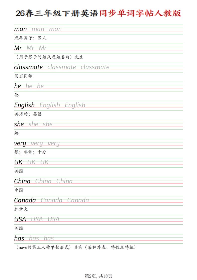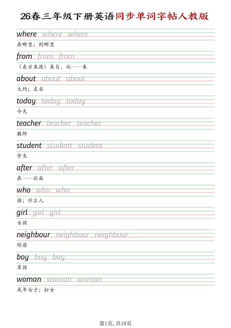 繁星职途 三年级 三下人教PEP版英语同步单词字帖 https://www.fanxingzhitu.com/48208.html