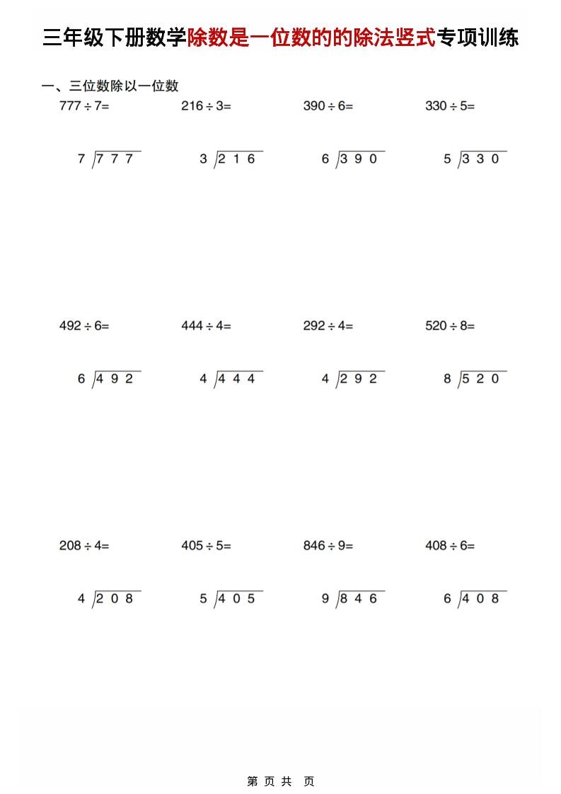繁星职途 三年级 三年级下数学除数是一位数的的除法竖式专项训练 https://www.fanxingzhitu.com/52009.html