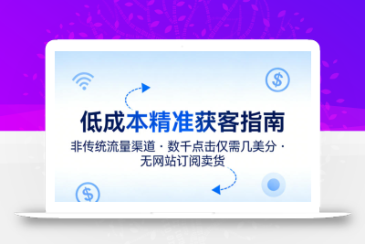 低成本精准获客指南》教会您运用非传统流量渠道,实现数千点击仅需几美分的超高性价比推广。