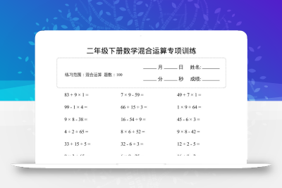 繁星职途 二年级 二年级下数学加减乘除综合练习(30页) https://www.fanxingzhitu.com/52822.html