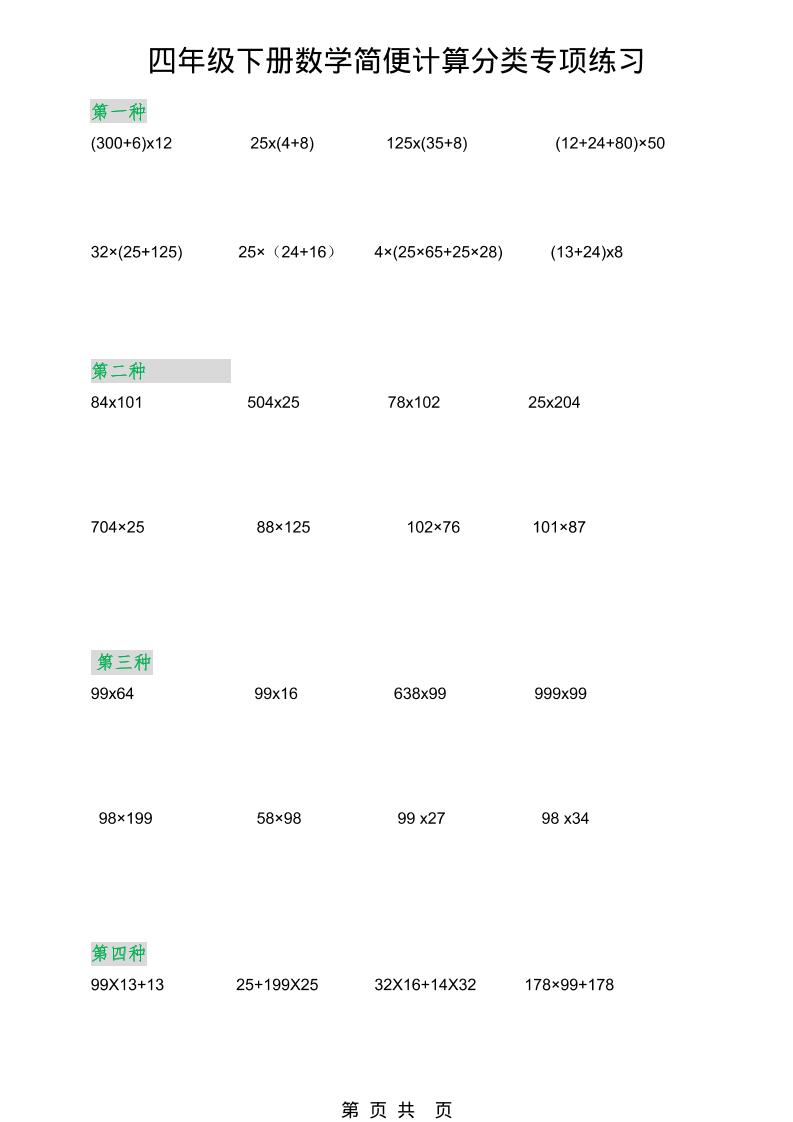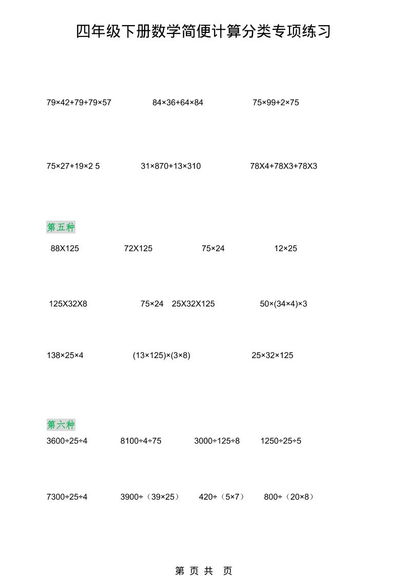 繁星职途 四年级 2026春新版四年级下数学简便计算分类专项练习 https://www.fanxingzhitu.com/60546.html