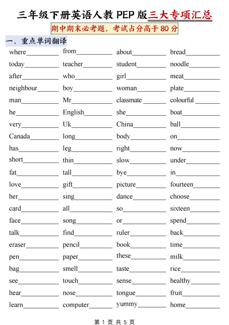 繁星职途 三年级 三下人教PEP版英语三大专项汇总10页 https://www.fanxingzhitu.com/8593.html